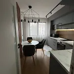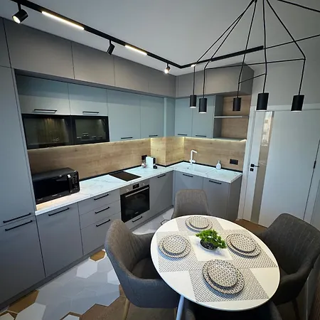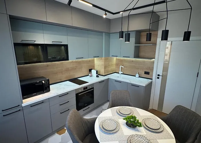 Diese Unterkünfte bietet seinen Gästen einen Balkon und eine voll ausgestattete Küche sowie moderne Annehmlichkeiten wie eine Klimaanlage. Für zusätzlichen Komfort stehen im Free Private Garage Stylish Apartment Near Center eine getrennte Toilette und eine Dusche zur Verfügung. Das Badezimmer ist zudem mit einem Haartrockner, einer Duschhaube und Handtüchern ausgestattet.